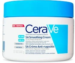 CeraVe SA Skin Smoothing Moisturising Cream for the body. This Cream helps to alleviate rough and bumpy skin texture, leaving skin feeling smoother in just 3 days*. The 0.5% salicylic acid and 10% UREA in the formula gently exfoliates the skin, without compromising the skin’s natural barrier. Developed with dermatologists, this fast absorbing, non greasy Cream helps restore the skin’s natural barrier with three essential ceramides. The Patented MVE Technology locks in moisture giving hydration for up to 24 hours.