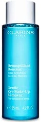 Clarins Gentle Eye Makeup Remover gently eliminates makeup and impurities, soothes the eyelids, and strengthens the lashes.